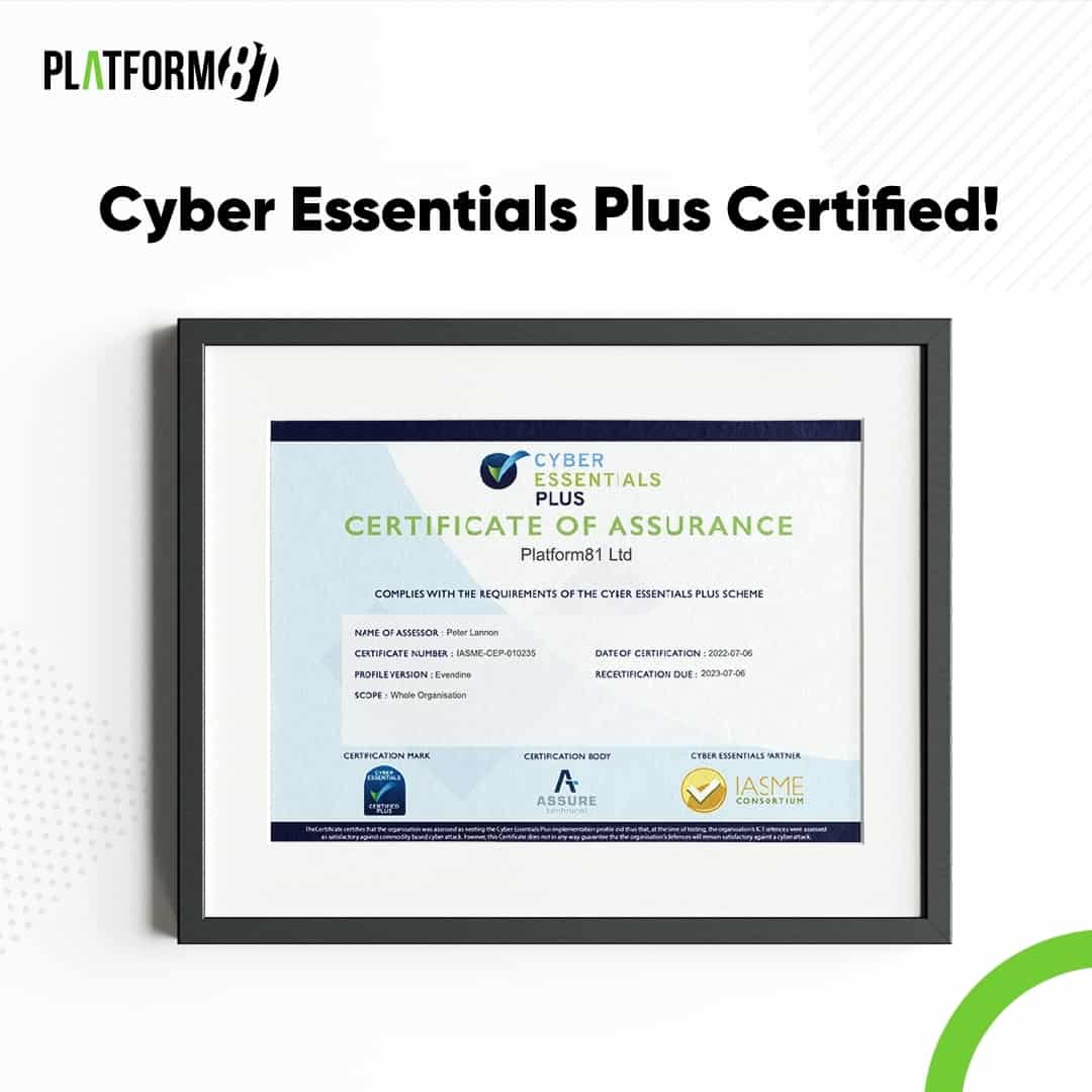 With the new Cyber Essentials Plus Scheme, we are confident of our high cyber security level. We are looking forward to growing our business and taking Platform81 to new heights.